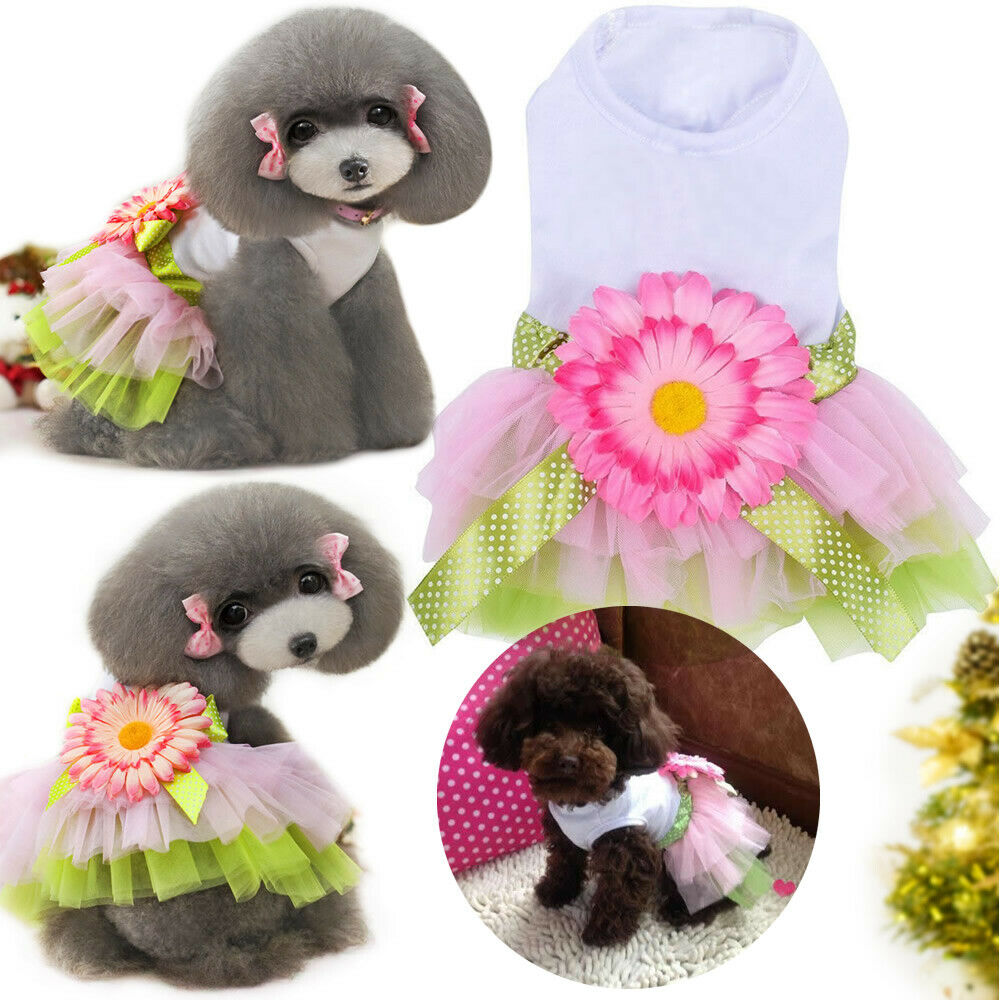 Dog Tutu Dress Pet Dog Cat Gauze Flower Bowknot Princess Skirt Apparel Outfit