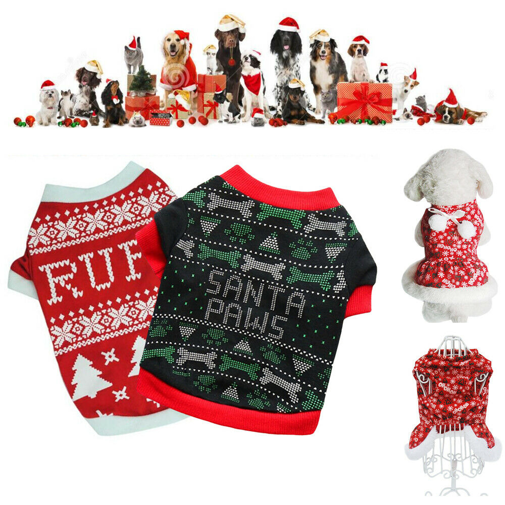 Cute Dogs Xmas Sweater Santa Costume Apparel T-shirt Pet Puppy Cats Christmas