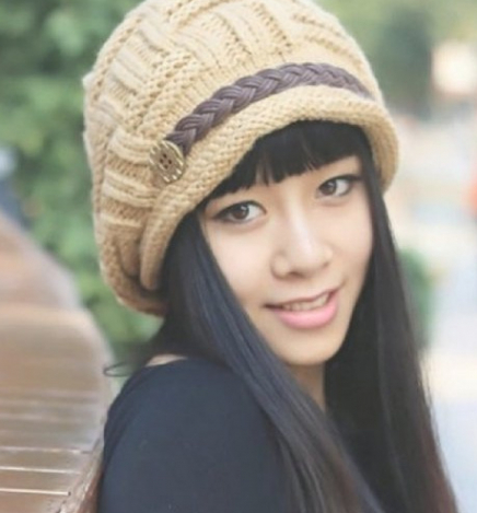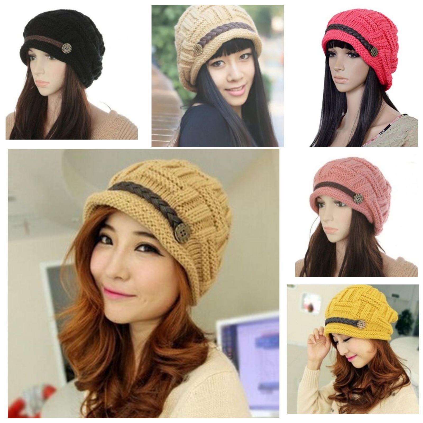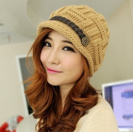 Knitted Hat Fashionable Winter Warm Button Wool Snow Ski Cap For Women Girls