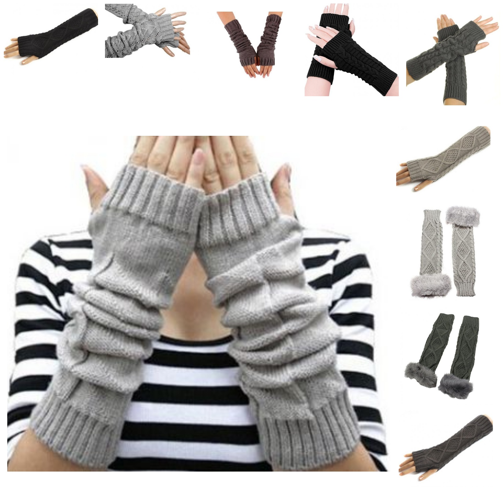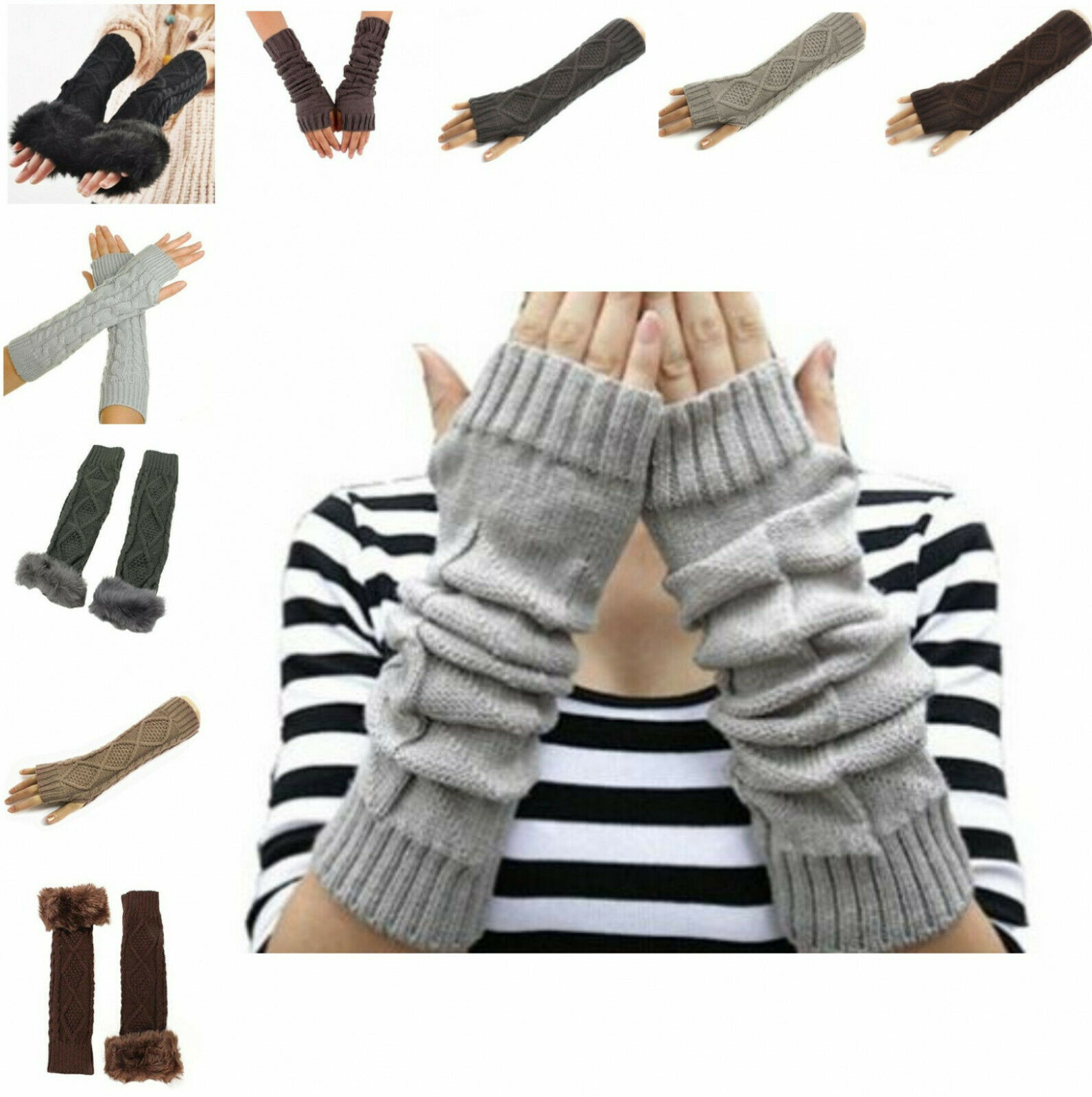 Winter Warm Long Gloves Stretchy Finger Less Knitted Arm Warmer For Women Girls