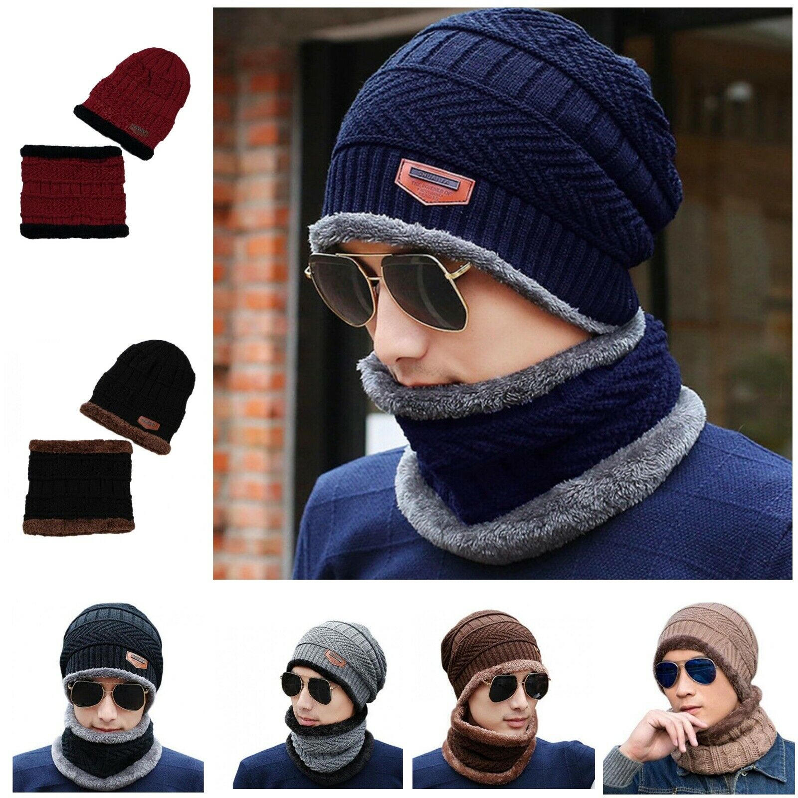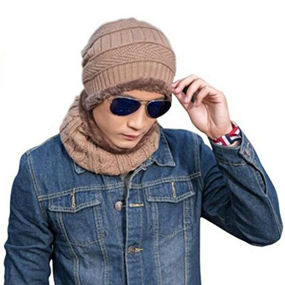 Beanie Hat Scarf Set Stretchy Cable Knitted Cap Warm Fleece Unisex Cap Scarf Set