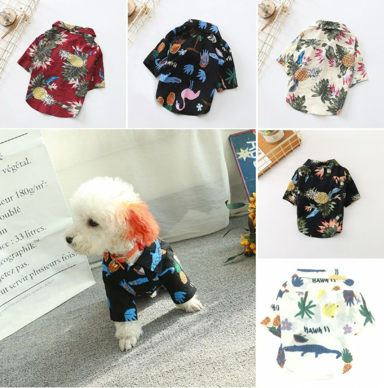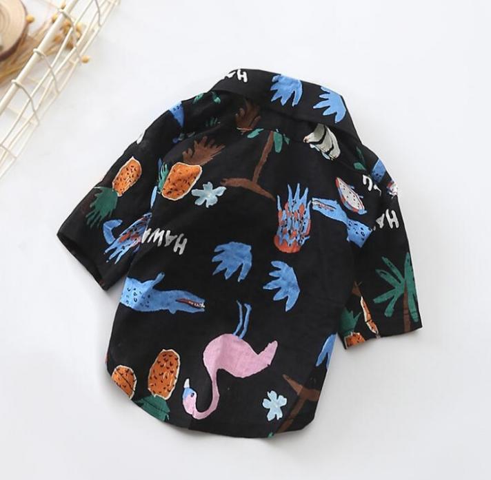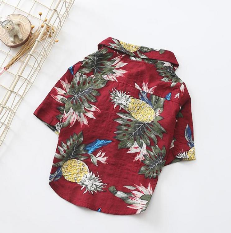 Cute Hawaiian Beach Dogs Shirt Vest Short Sleeve Button Up Cotton Pets Clothes