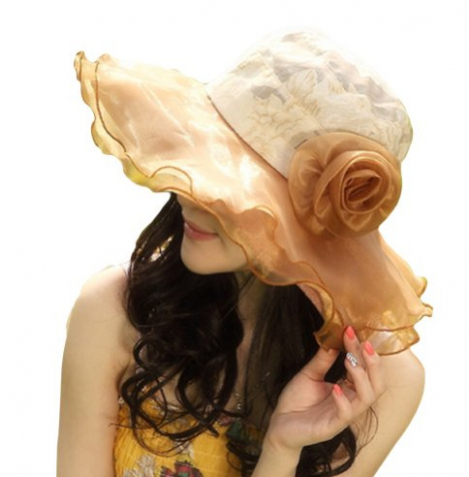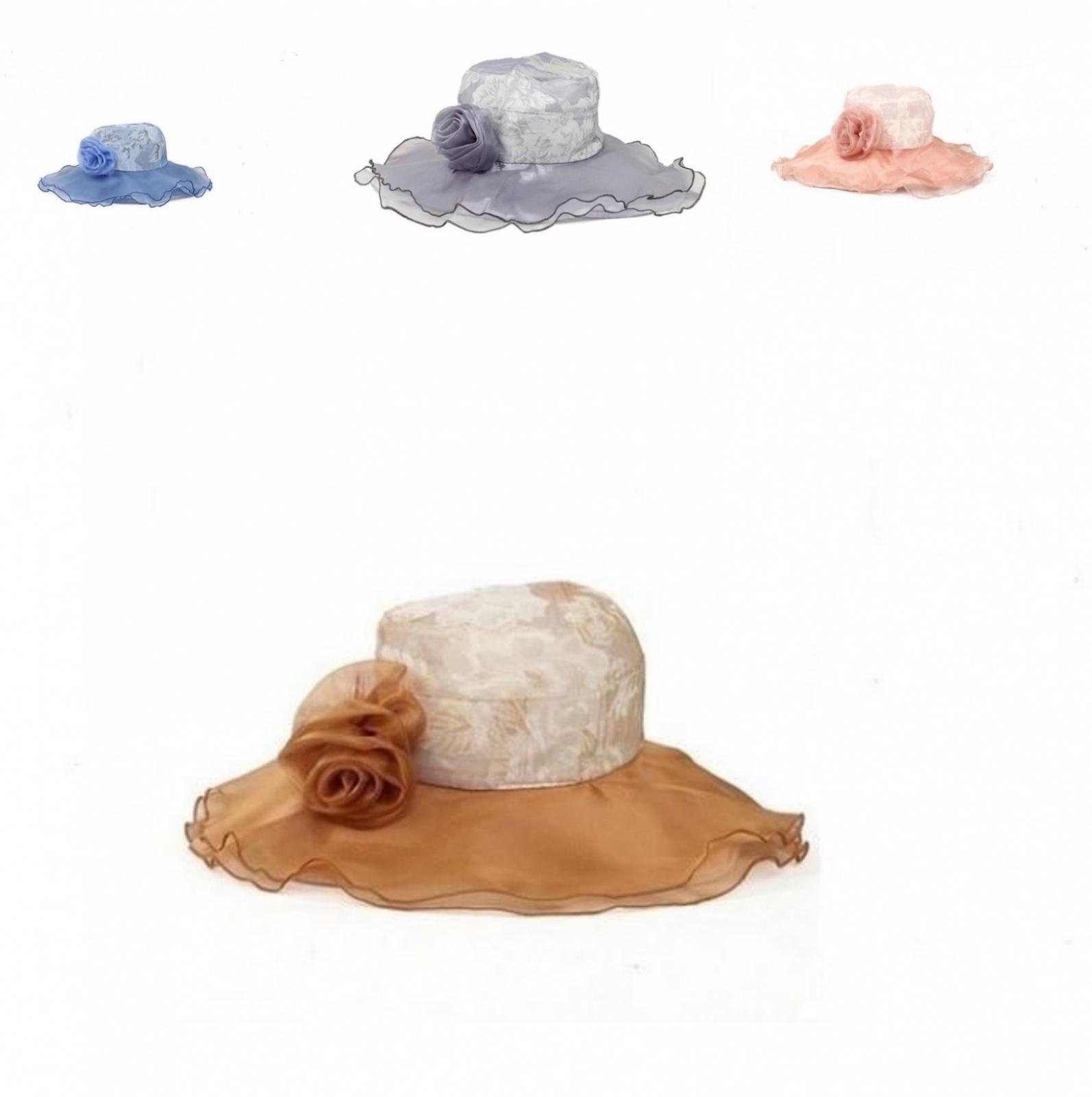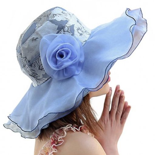 Floral Chiffon Layer Wide Brim Hat Kentucky Derby Foldable Women Bucket Cap