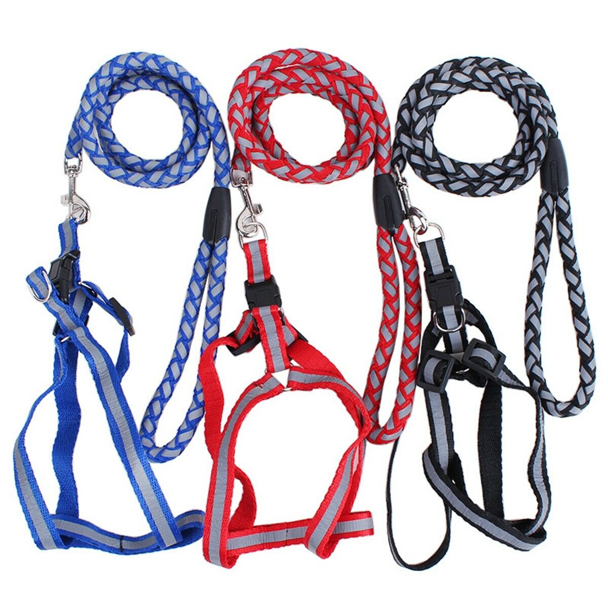 New Reflective Dog Leash Harness Set AdjustableBraided Nylon Lead Traction Rope