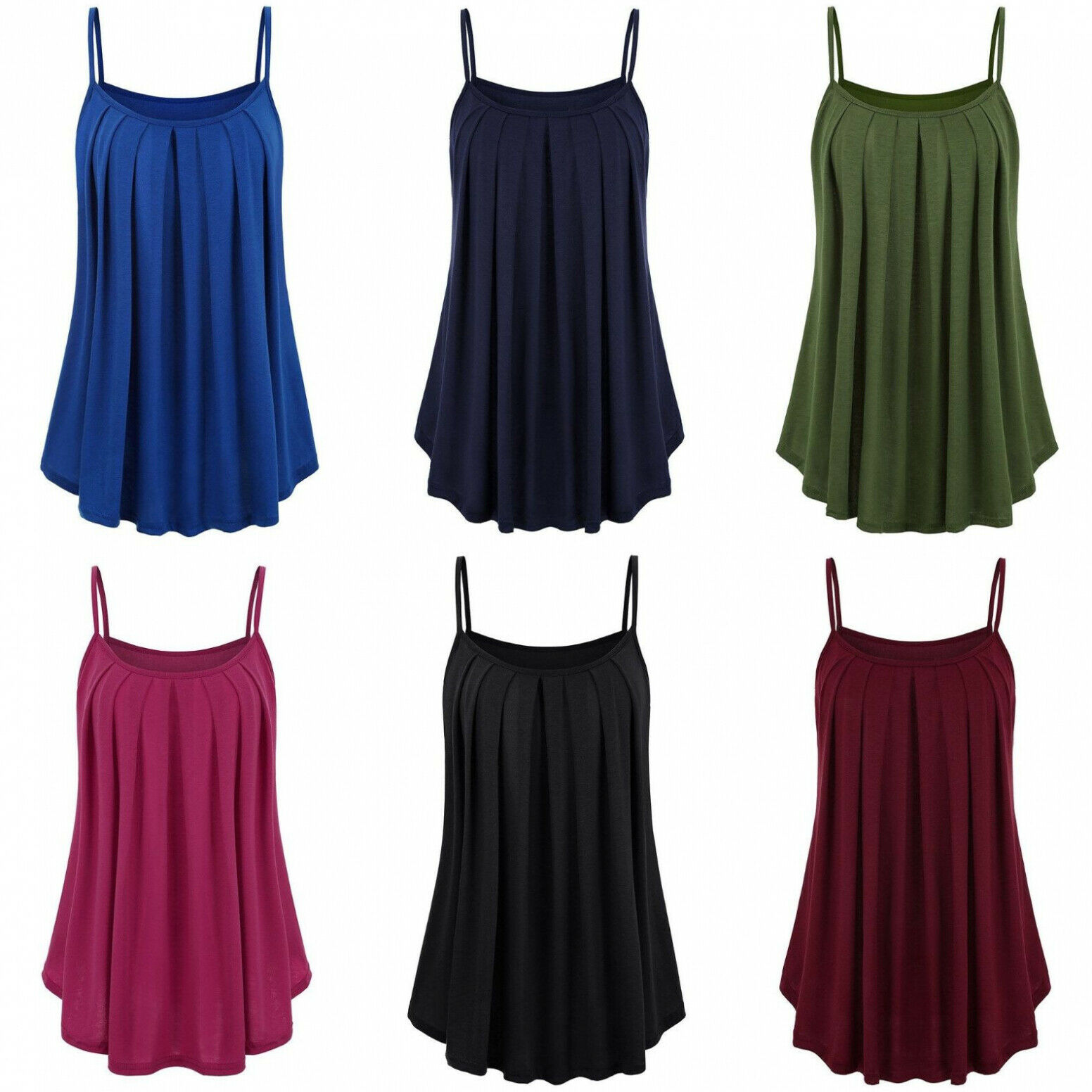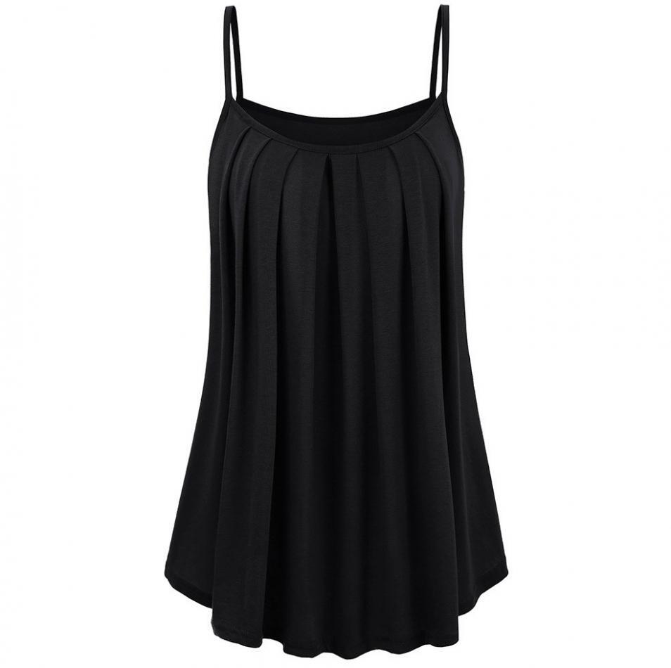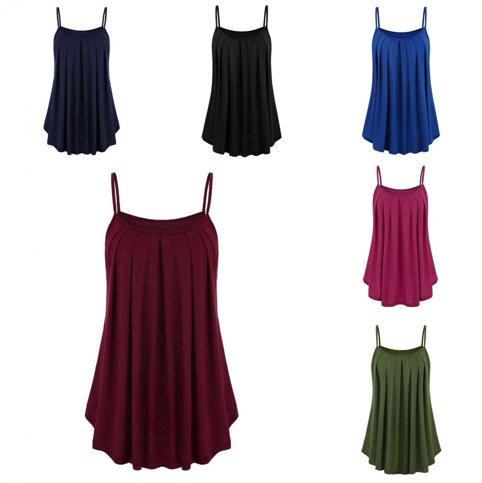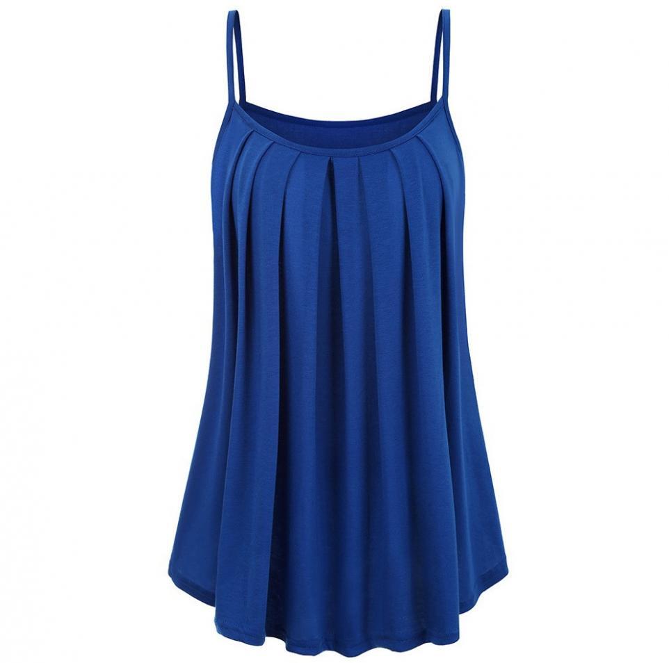 Tank Top Fashionable Chiffon Loose Solid Ruched Sleeveless Strip Pattern Top