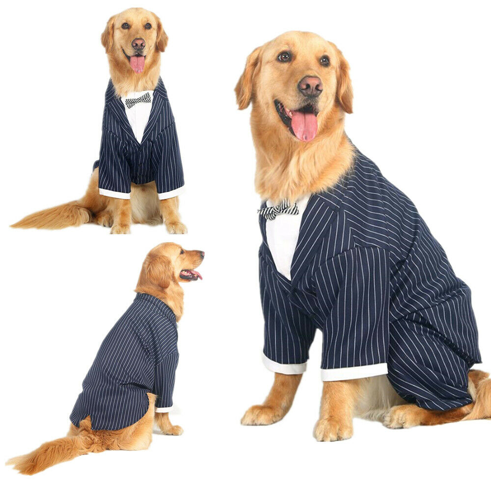 Formal Tuxedo Style Striped Bowtie Suit Costume for Dogs Colthes Wdding Party