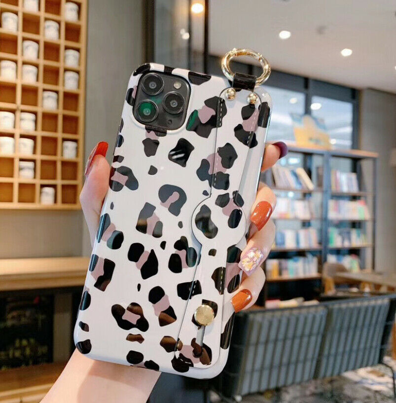 Cartoon Leopard Wrist Strap Back Stand Case for iPhone 11 Pro Max XS 78 Plus