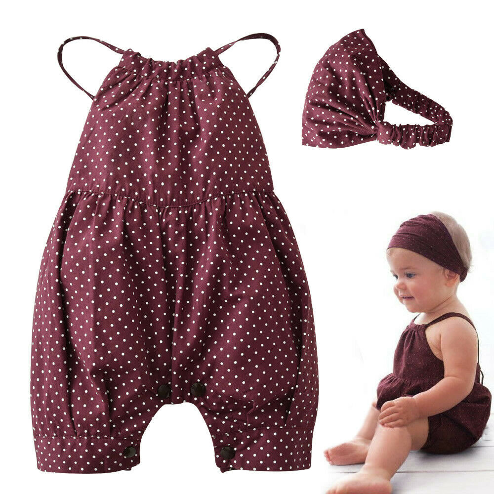 Baby Girls Dots Romper Harnesses Jumpsuit Headband Set Summer Infant Outfits