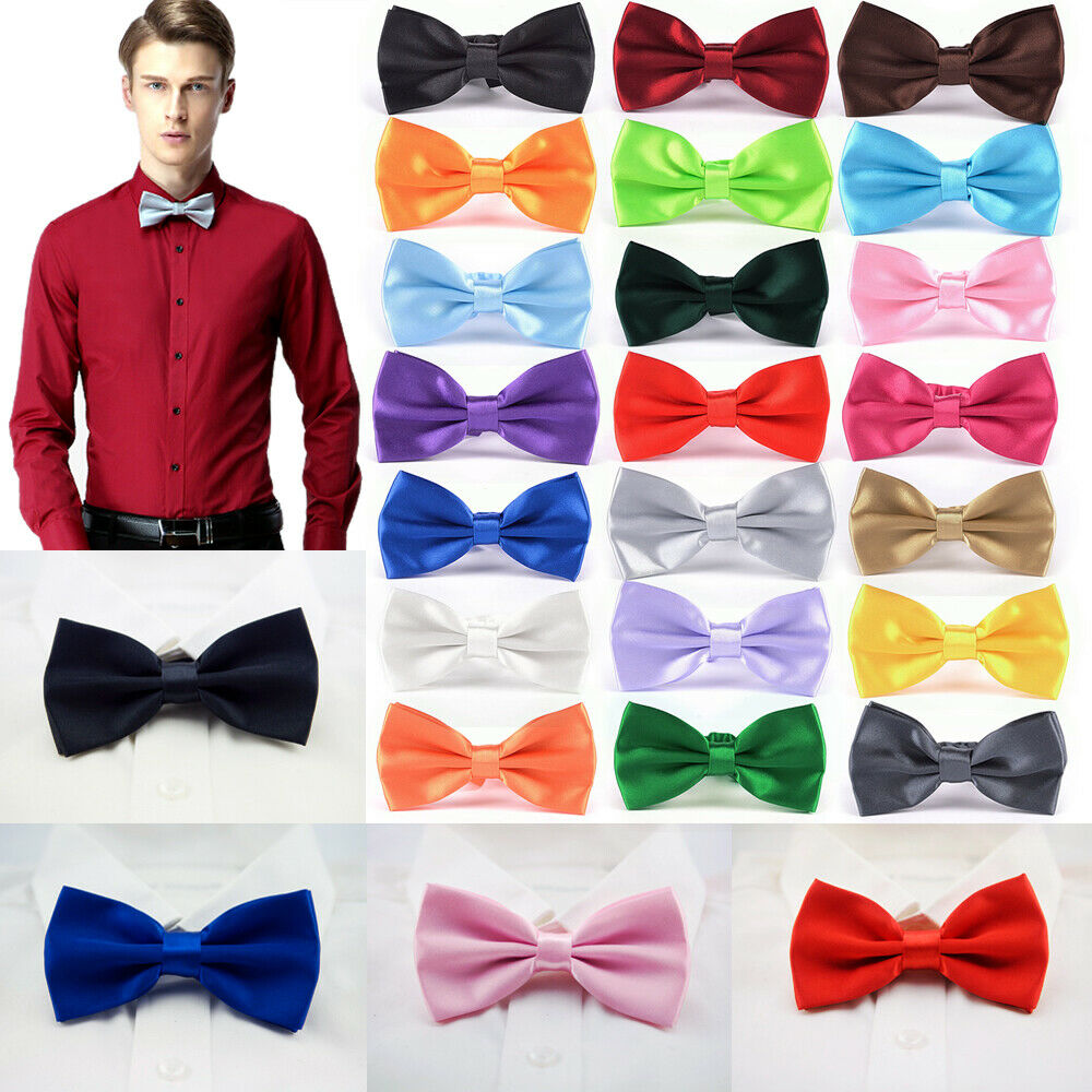 Classic Bow Ties Mens Solid Satin Weddings Balls Adjustable Neck Suit Bowtie