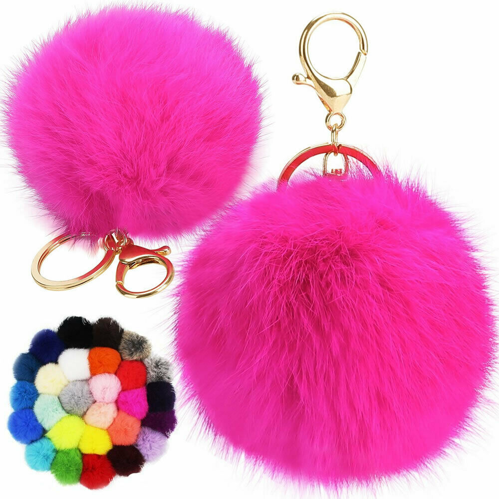 Faux Rabbit Fur Ball Pom Pom Charm Key Chain Gold Plated Keychain Car Key Ring