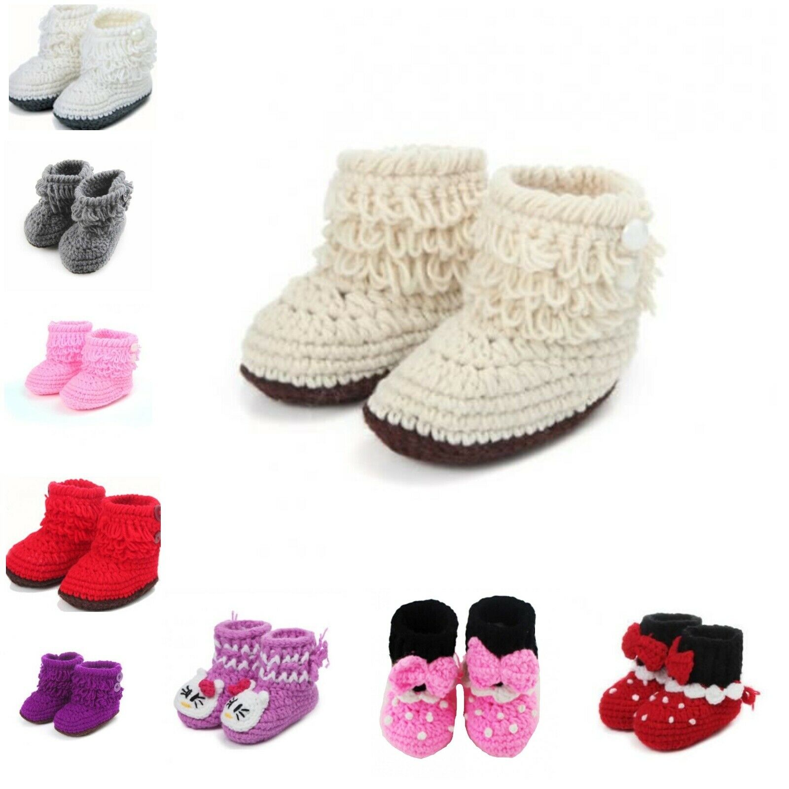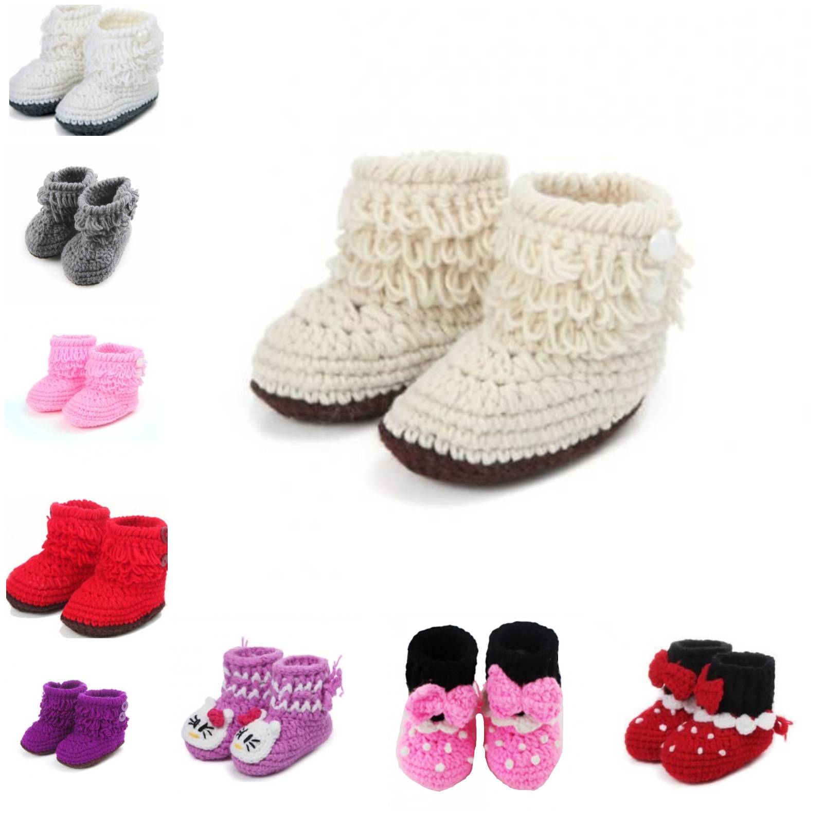 Baby Boots Cute Infant Hand Knitting Crochet Tassel Buckle Shoes For Newborn