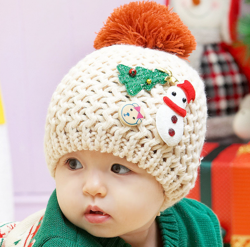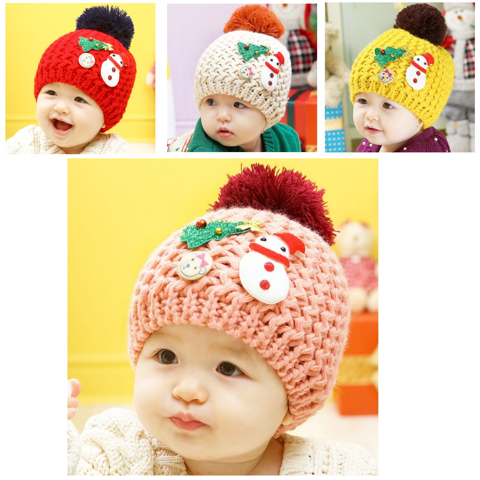 Cute Baby Hat New Christmas Tree & Snowman Pattern Woven Knit Crochet Warm Cap