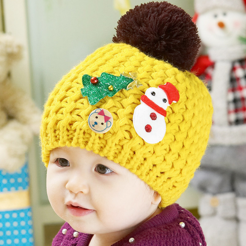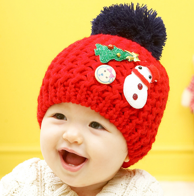 Cute New Baby Hat Christmas Tree & Snowman Pattern Woven Knit Crochet Warm Cap
