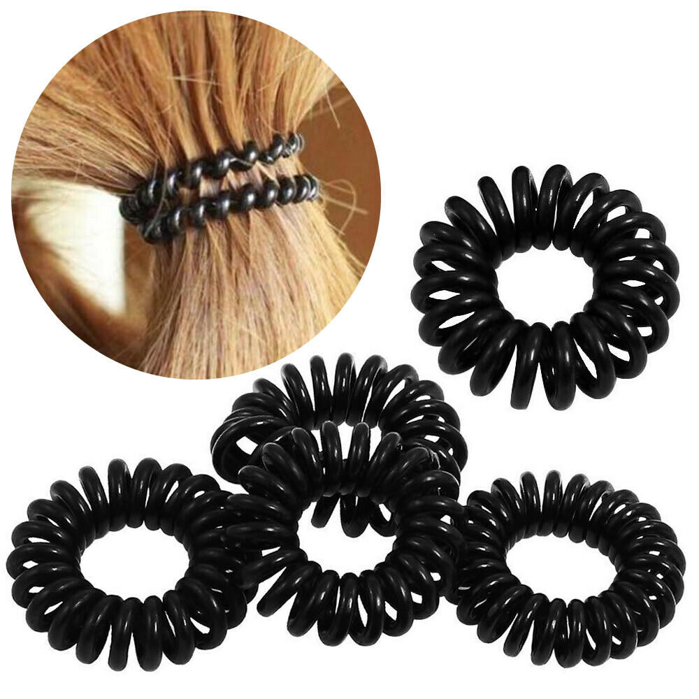 6-50 Pcs Black Phone Wire Line Hair Ring Band Bracelet Rope Ponytail Holder