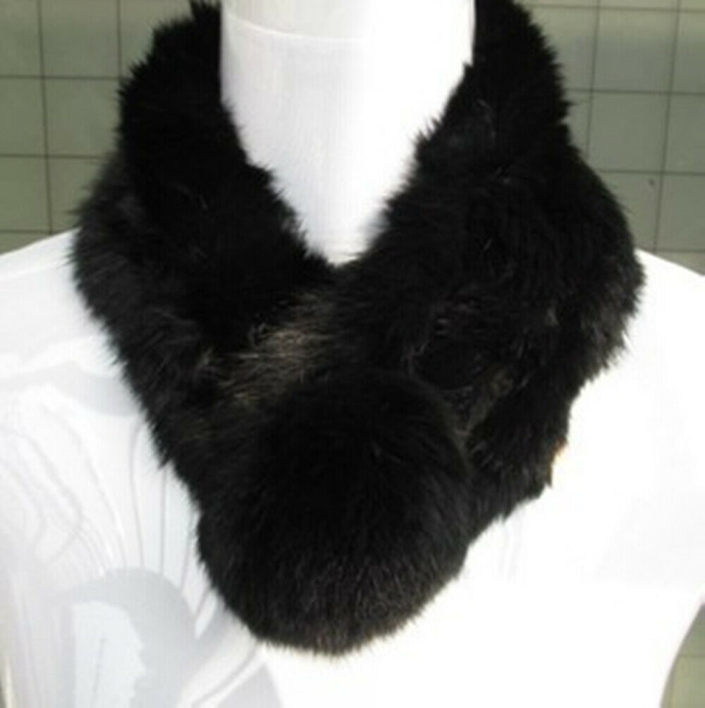 Winter Soft Black Rabbit Fur Scarf Wrap Collar Neck Warmer Scarves Women Girls