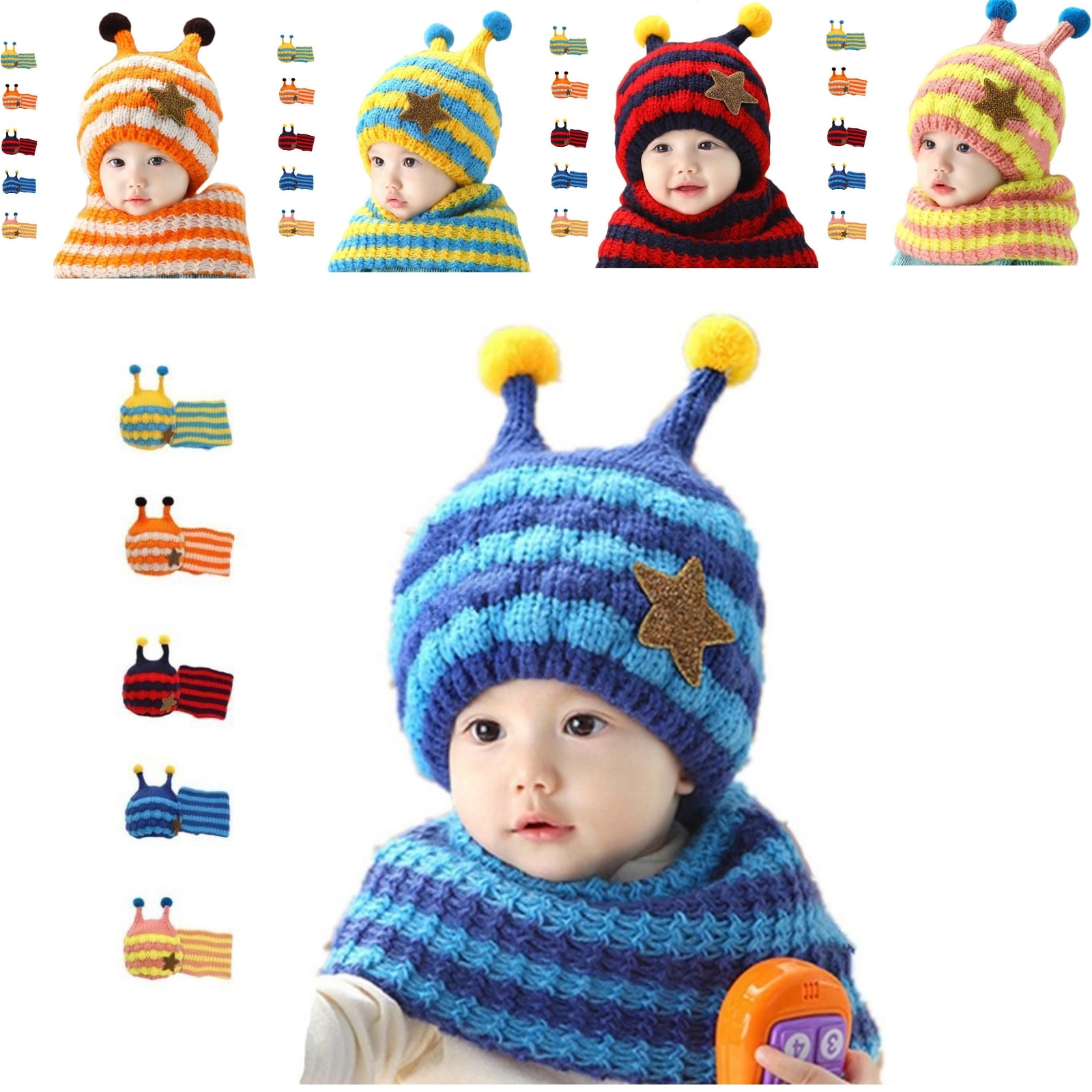 Baby Hat Stripe Honeybee Style Knitted Fleece Lining Ear-flap Hat And Knit Scarf