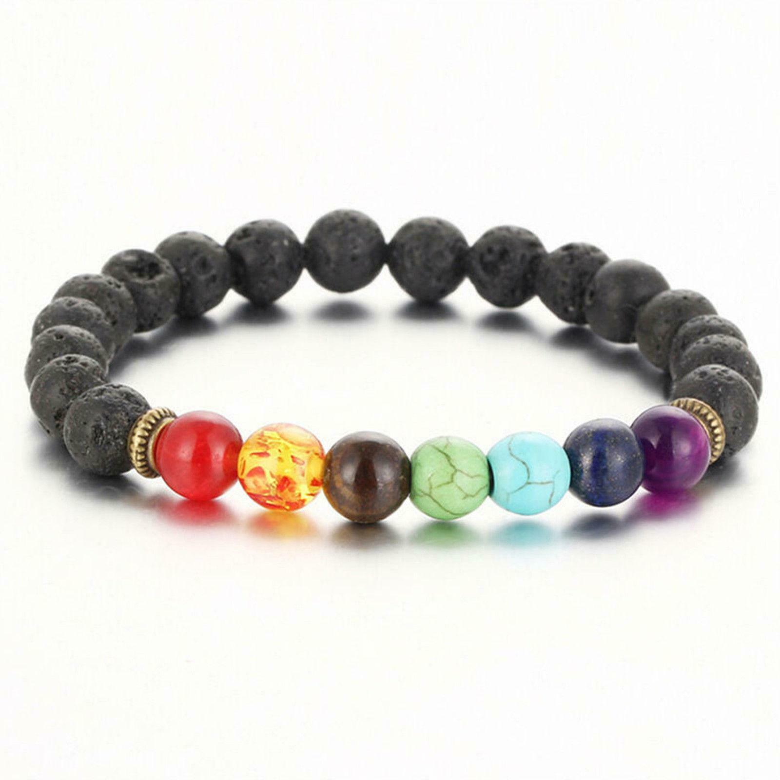 1pcs Chakra Healing Balance Beaded Bracelet Lava Yoga Reiki Prayer Stone Bangle