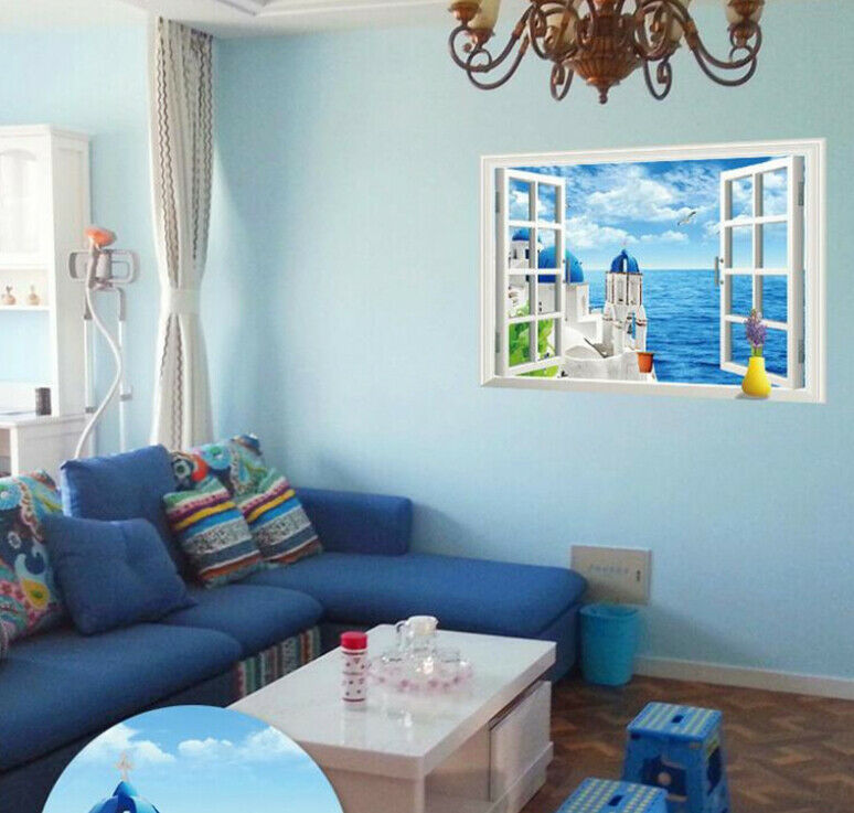 3D Window Ocean Beach Wave Wall Art Sticker Mural Decal Decor Seascape