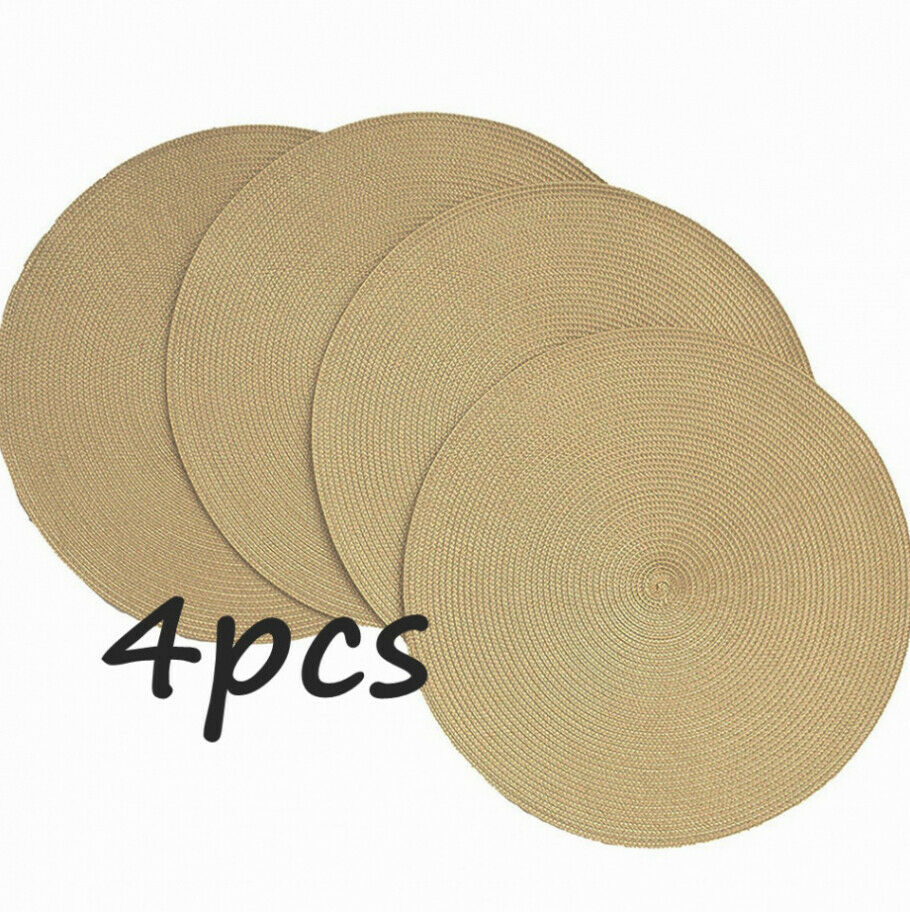 Braided Edge Round Woven Spiral Placemats 15” Round Set of 4 by Benson Mills