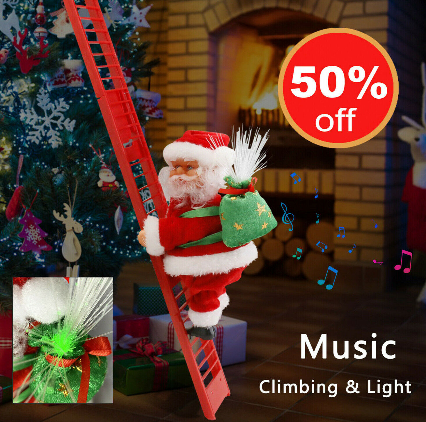 Animated Musical Santa Claus Electric Climbing Ladder Tree Christmas Decor Light
