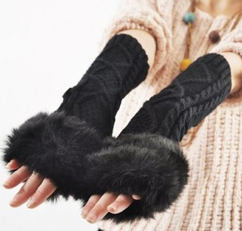 The knitted long gloves are nice equipment to keep your hands and arms warm in winter.