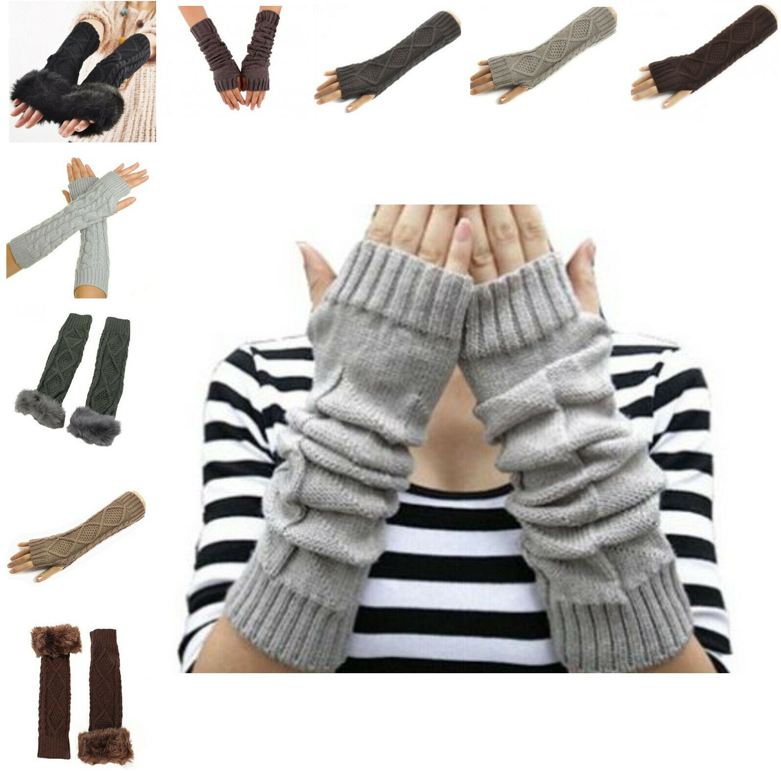 Arm Gloves Winter Warmer Knitted Finger-less Thumb Hole Long Gloves For Women
