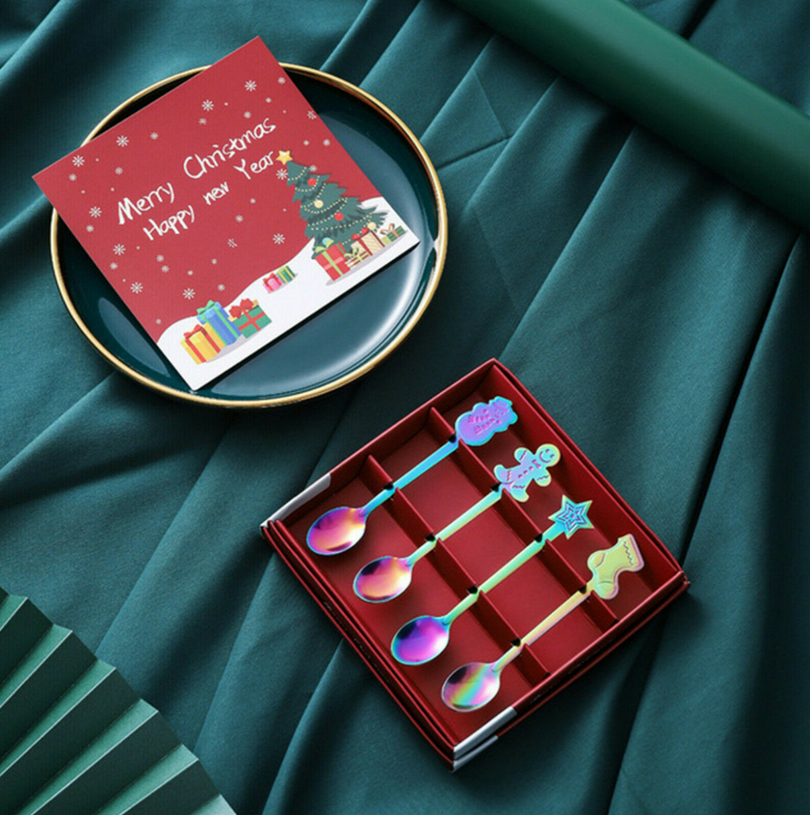 4Pcs Stainless Tea Scoops Kids Spoon Tableware Christmas Coffee Spoons Xmas Gift