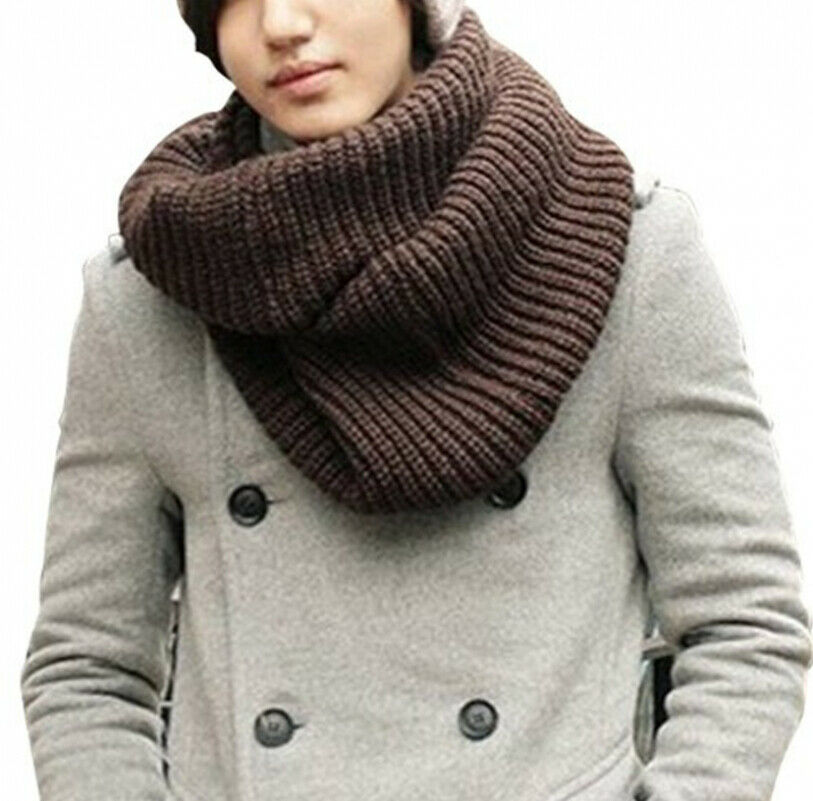 Stripped Knit Infinity Winter Scarf Elastic Warm Black White String Circle Loop