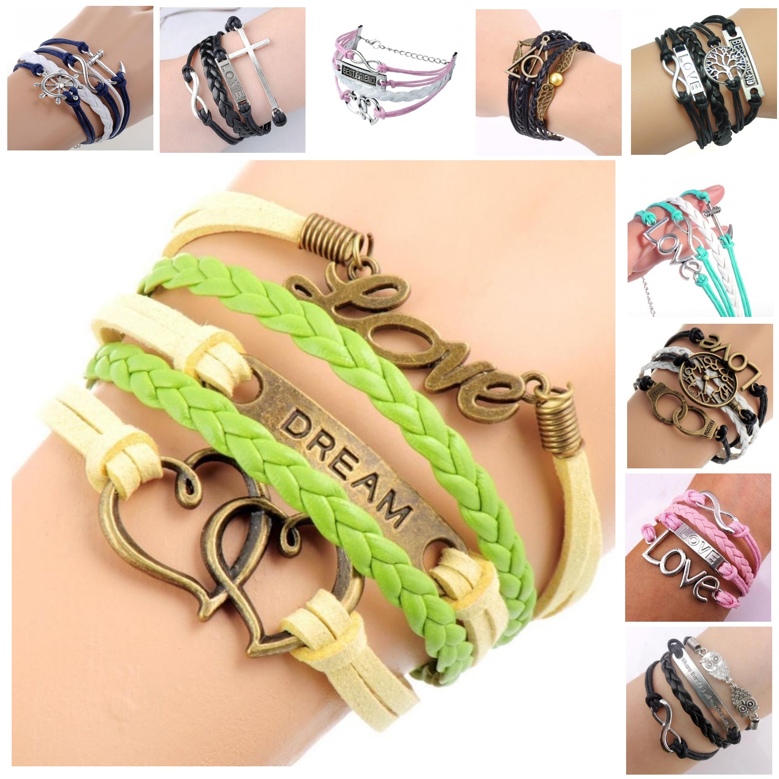 Pretty Handmade Multilayer Braided Leather Love Charms Friendship Bracelet NEW