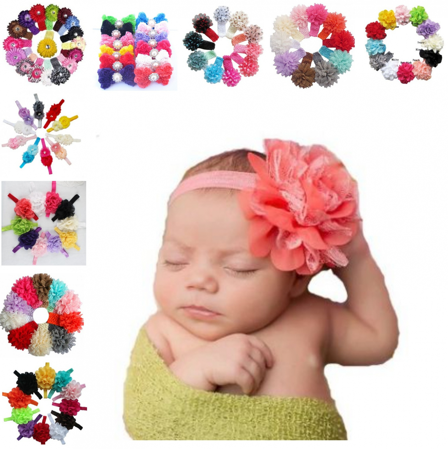 Pretty Baby Girls Chiffon Flower Elastic Soft Hairband Photography Lace Headband