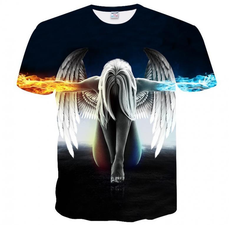 New Fashion Short Sleeve T Shirts Casual 3D Angel Wings Print Tops For Mens