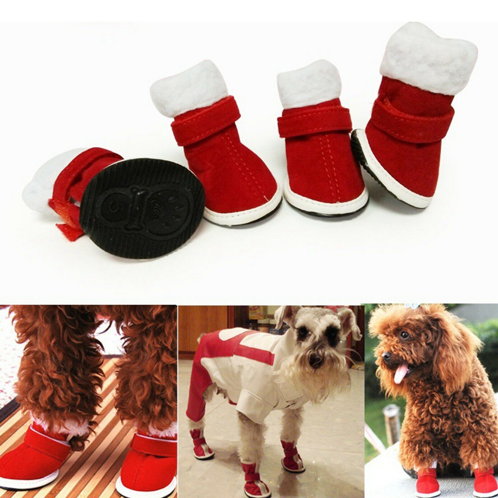 Comes in 4 pcs of santa inspired pet winter boots ideal as christmas shoes for dogs. Perfect for the coming holidays!