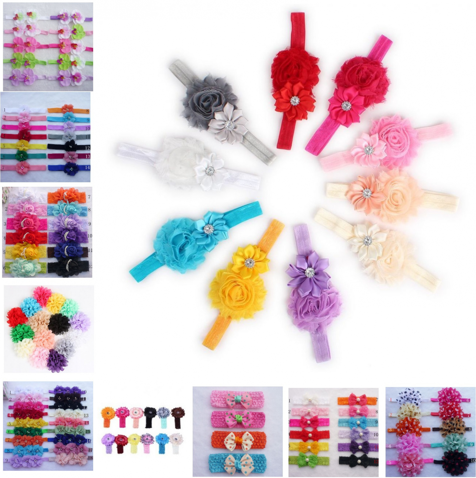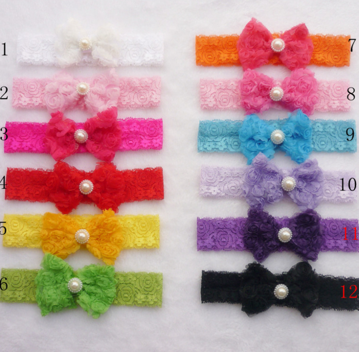 Cute Baby Infant Girls Hair Pearls Bowknot Chiffon Flower Lace Band Headbands
