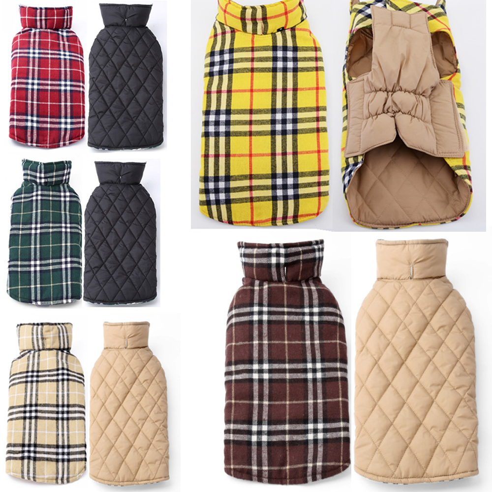Pet Dog Coat Windproof Winter Warm British Style Plaid Vest Puppy Jacket Apparel