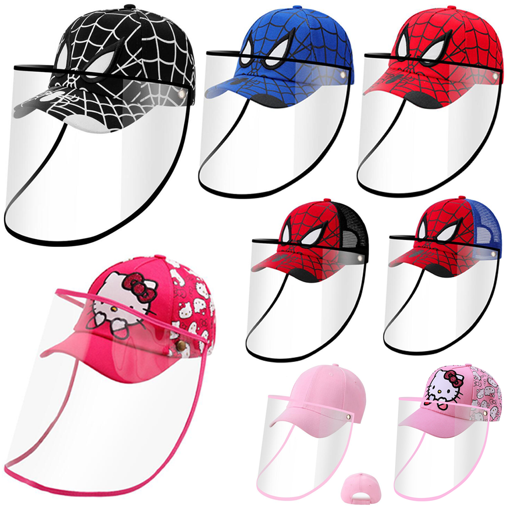 Kids Children Full Face Shield Anti-Saliva Removable Visor hat Spider Cartoon Baseball Cap