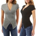 Women's Deep V Neck Short Sleeve Unique Cross Wrap Sexy Slim Fit Tops
