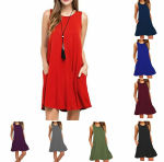 Women's Casual Swing Simple T-Shirt Loose Dress with Pockets Sleeveless Solid