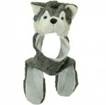 White Wolf Husky Full Animal Hood Hoodie Hat Faux Fur 3 in 1 Function