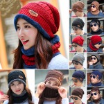 Beanie Hat Scarf Set Stretchy Cable Knitted Cap Warm Fleece Unisex Cap Scarf Set