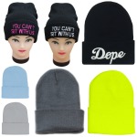 Embroidered Cuff Beanie Knit Cap Slouchy Skull Ski Unisex Plain Winter Warm Hat
