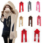 Candy Hoodie Long Scarf Hat Gloves Set 3 in 1 Warm Shawl Snood Wraps Women Girls