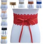 Women Girls Sweet Lace Bowknot Stretch Elastic Dress Waist Band Decor Wrap Belt